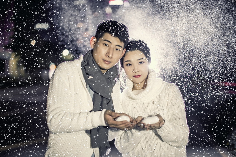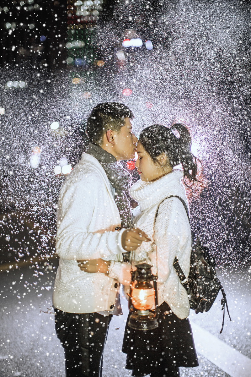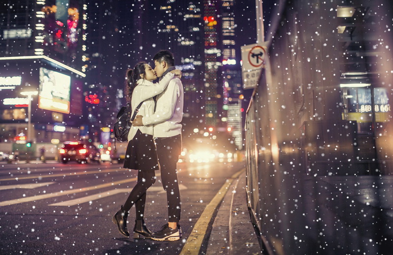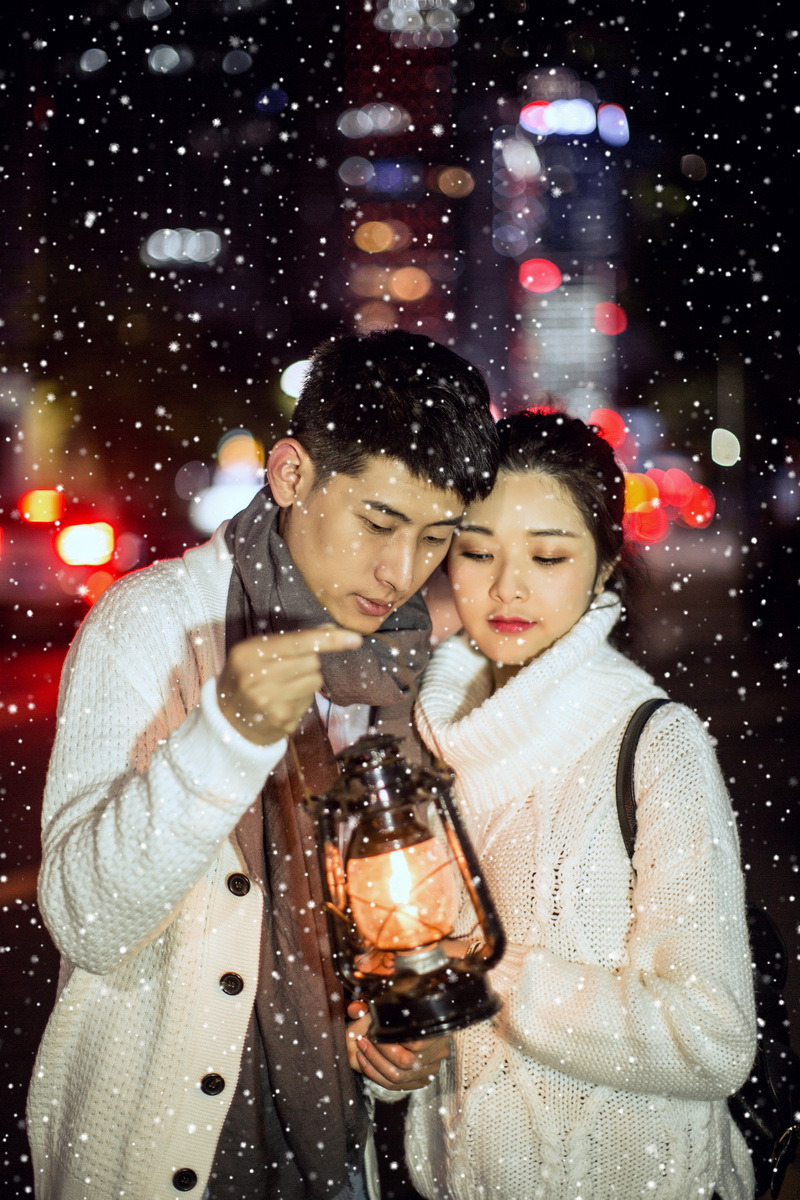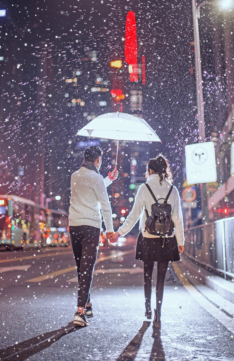 如果下雪我就为你撑伞之夜景都市雪景