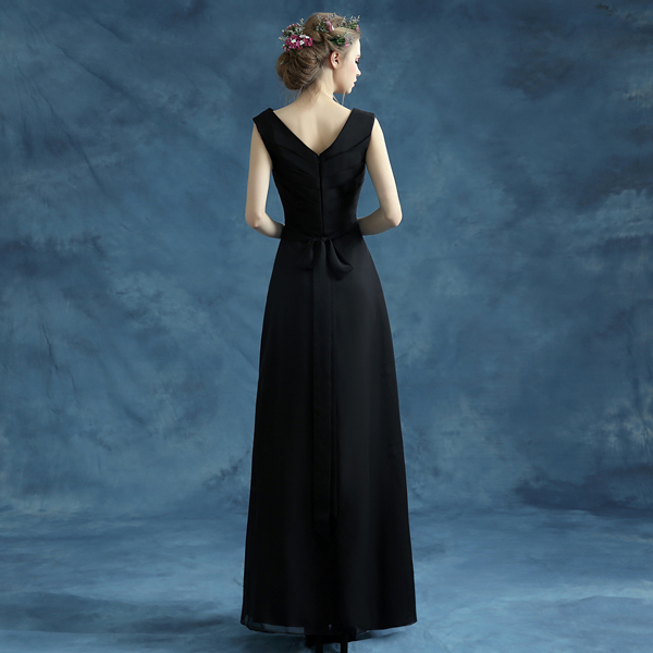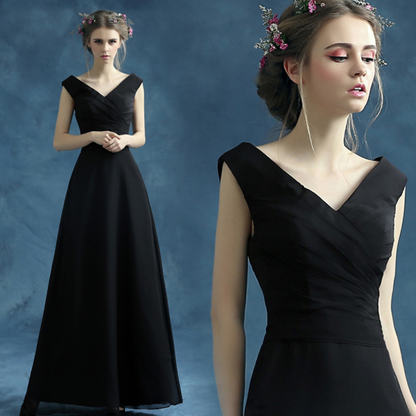 • 2017性感黑色v领新娘伴娘长款婚纱晚宴年会演出主持人礼服