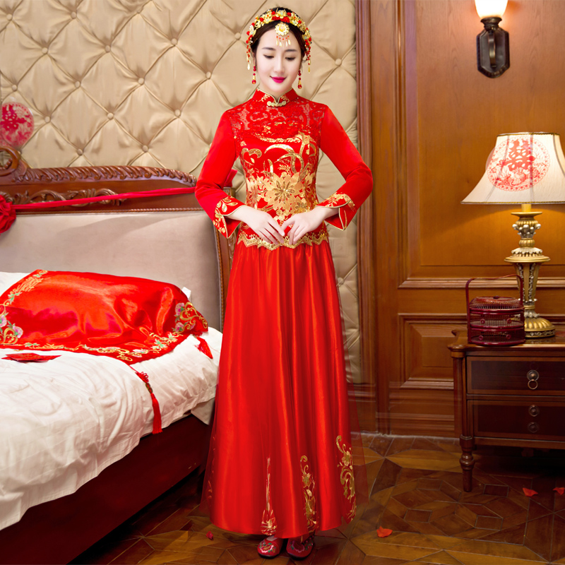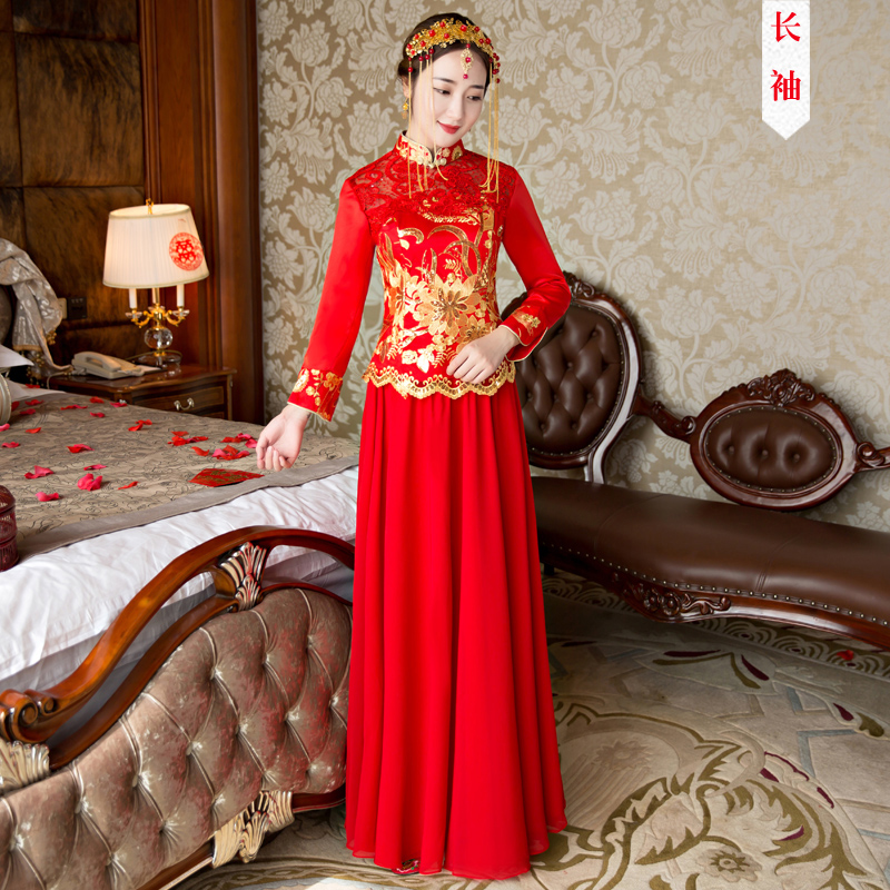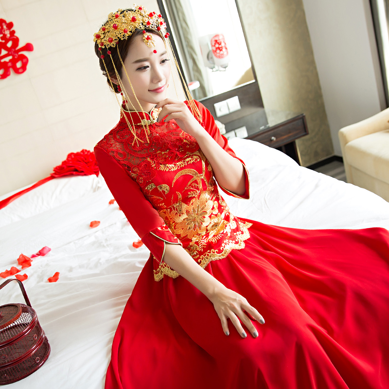 2017新款春夏季中式婚纱礼服新娘敬酒服旗袍长款结婚显瘦秀禾