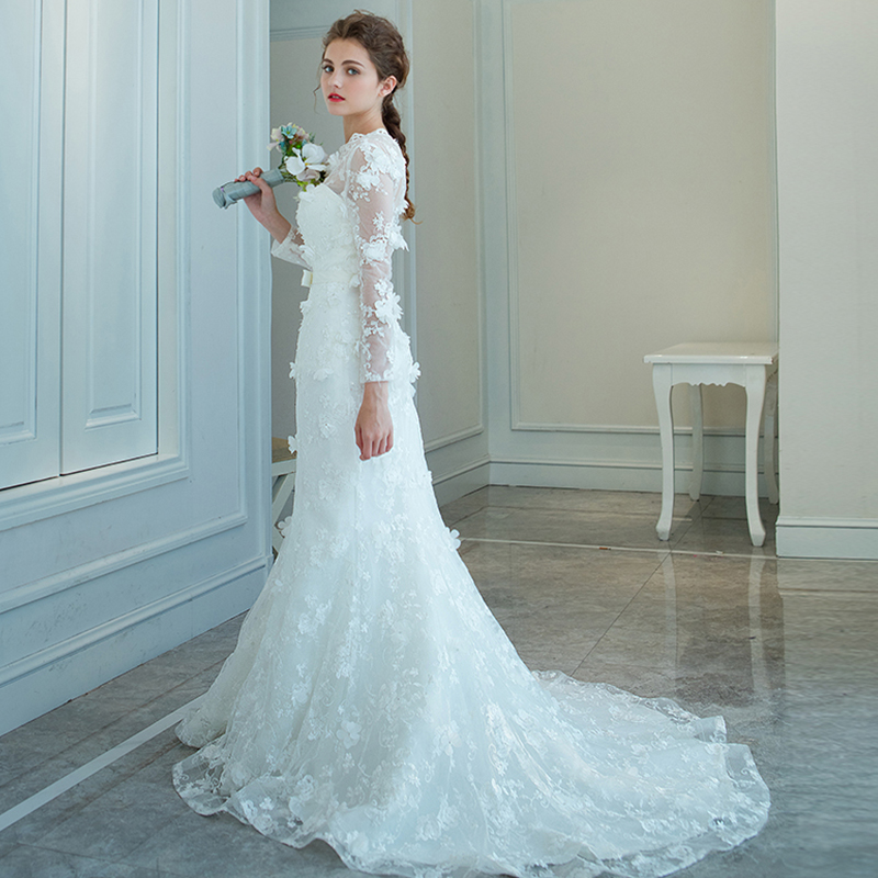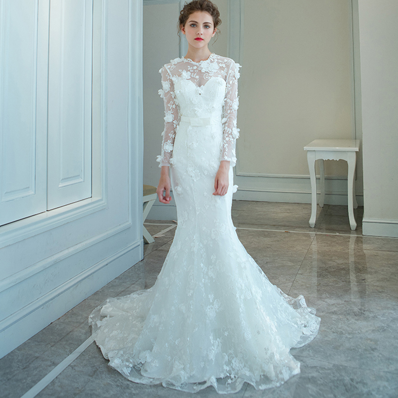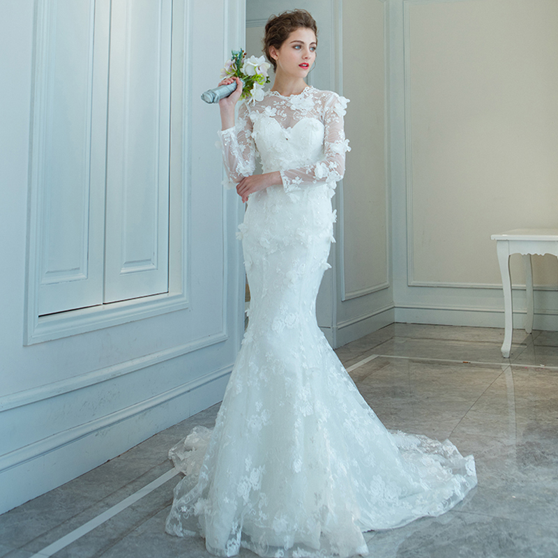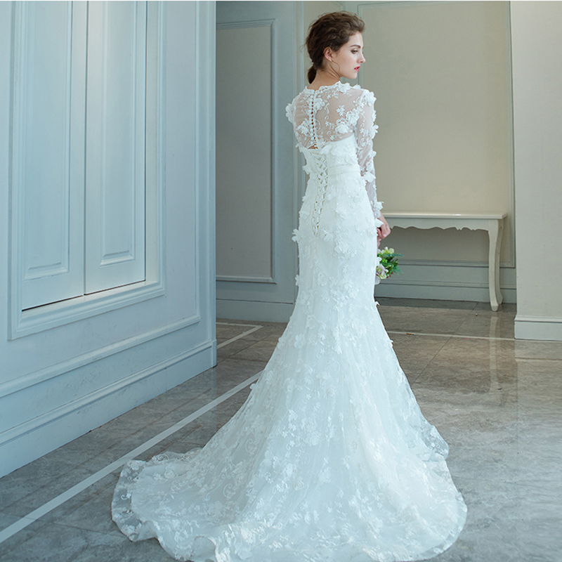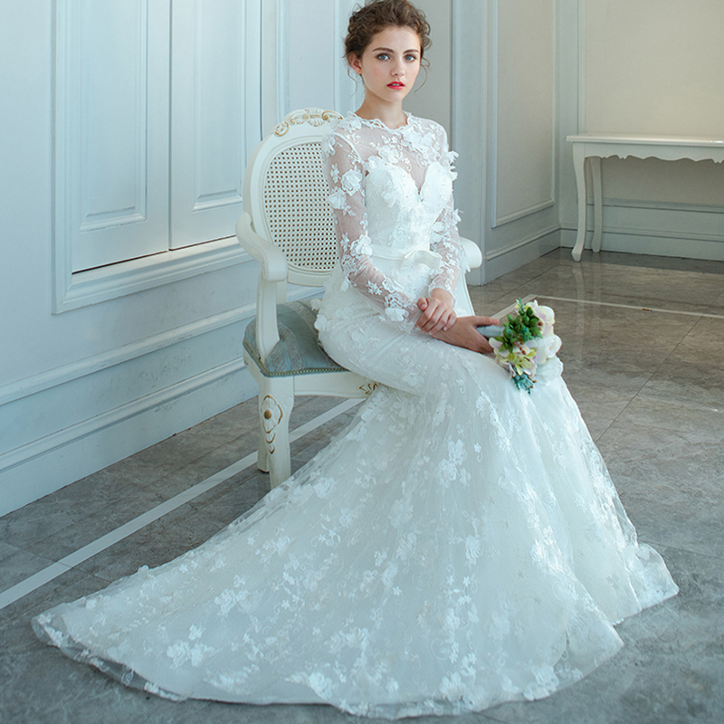 长袖鱼尾婚纱收腰修身小拖尾婚纱礼服新娘2017春季韩款10
