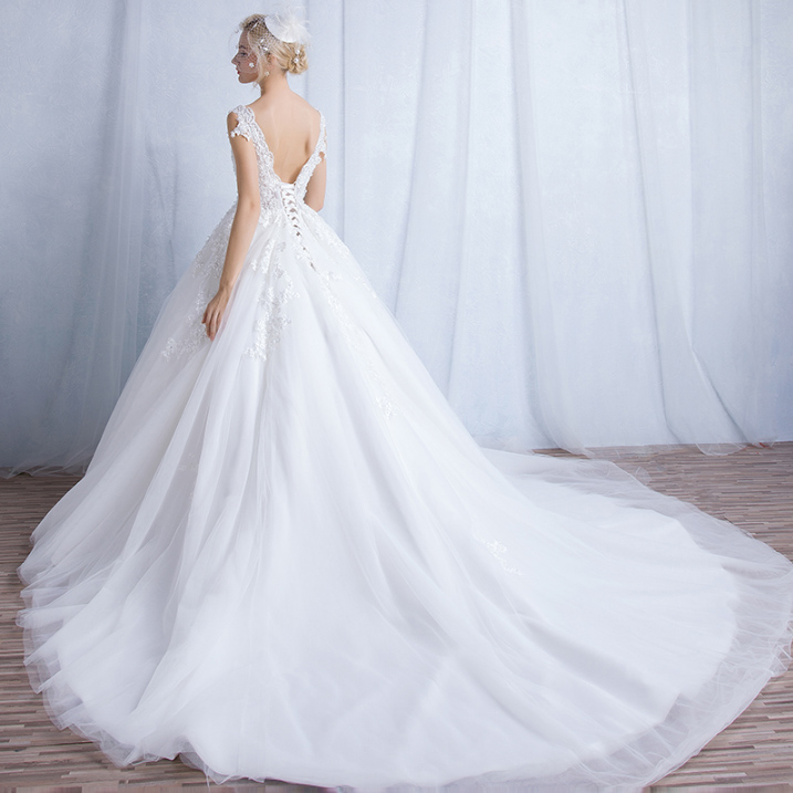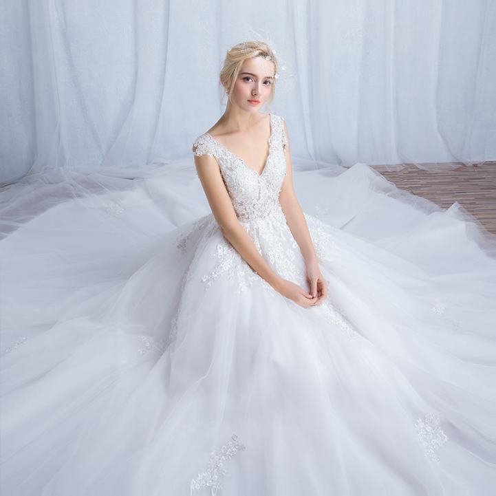 2017新款春夏新娘韩式齐地双肩V领孕妇长拖尾
