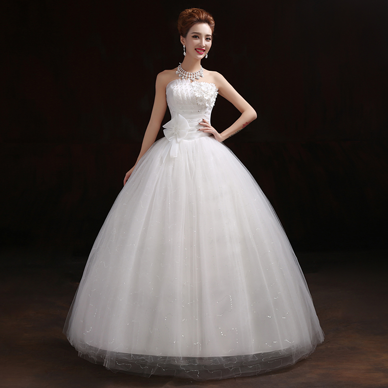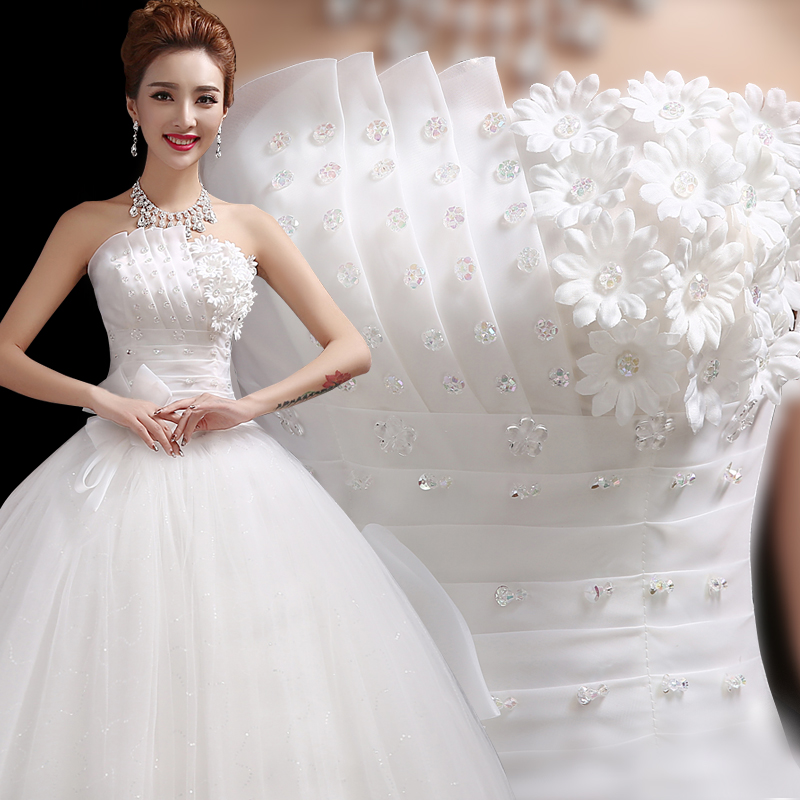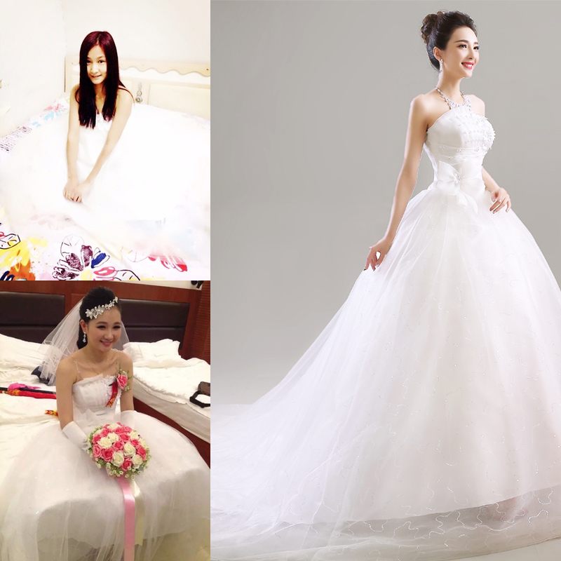 韩式春夏季公主齐地抹胸婚纱新款显瘦简约新娘结婚长拖尾礼服