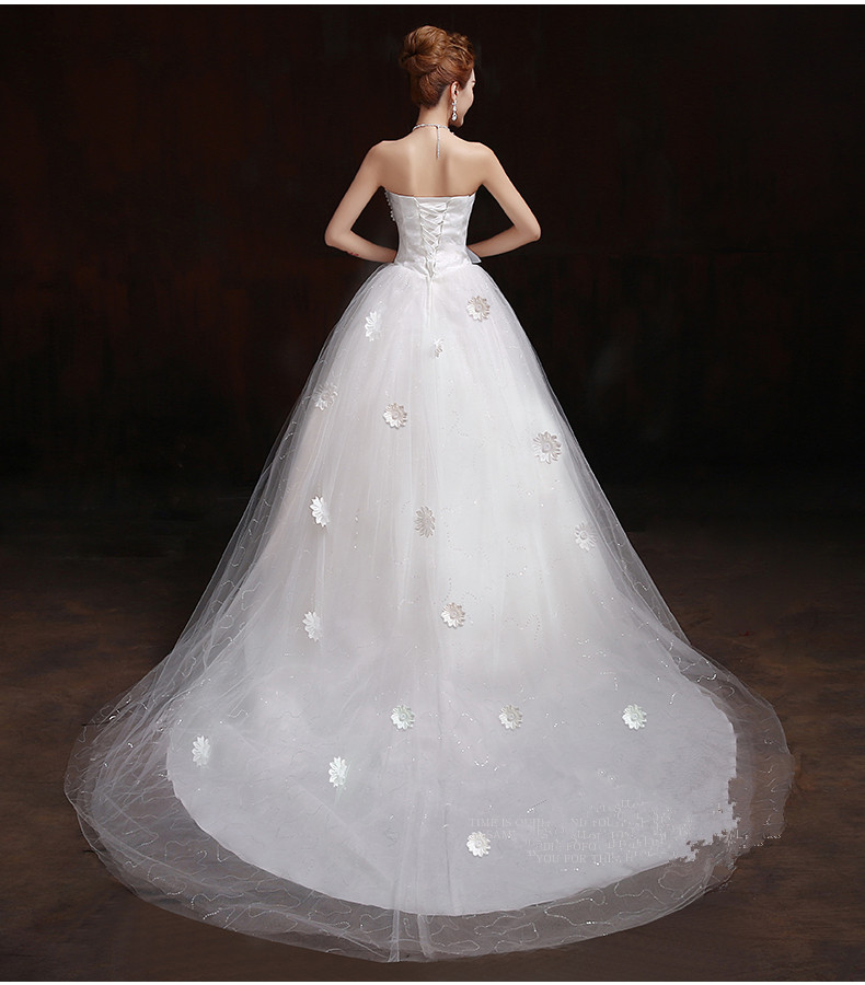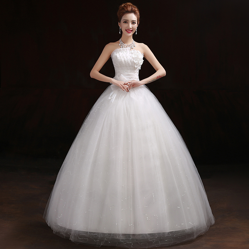• 韩式春夏季公主齐地抹胸婚纱新款显瘦简约新娘结婚长拖尾礼服