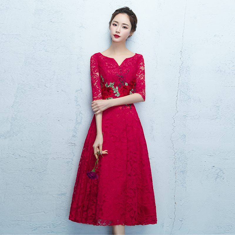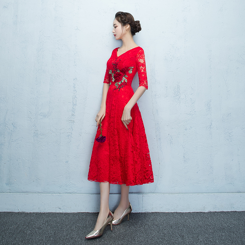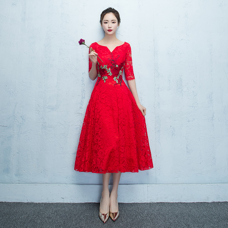 • 新款!新款红色时尚显瘦中国风结婚礼服韩版中长款