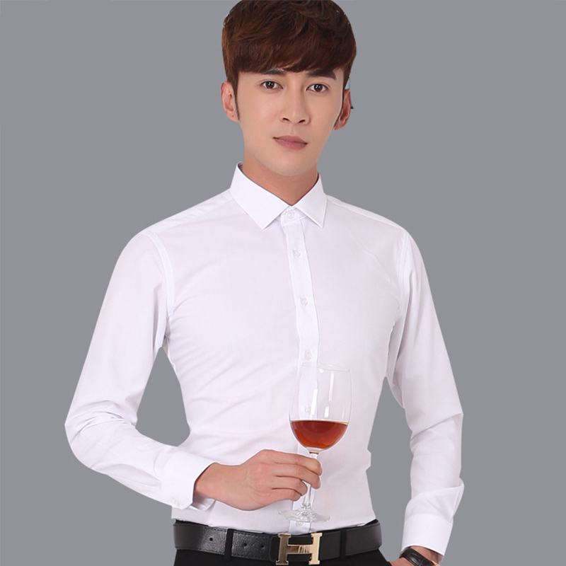 • 韩版修身新款男式衬衫棉商务正装男士长袖纯白色衬衣72