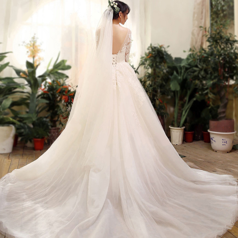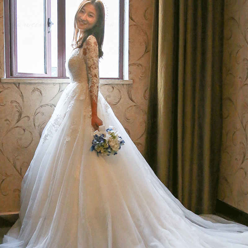 婚纱礼服2017新款春夏季新娘结婚齐地奢华长拖尾一字肩109