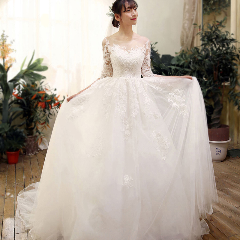 • 婚纱礼服2017新款春夏季新娘结婚齐地奢华长拖尾一字肩109