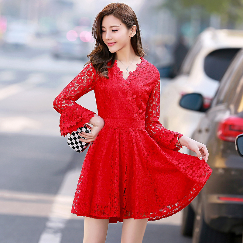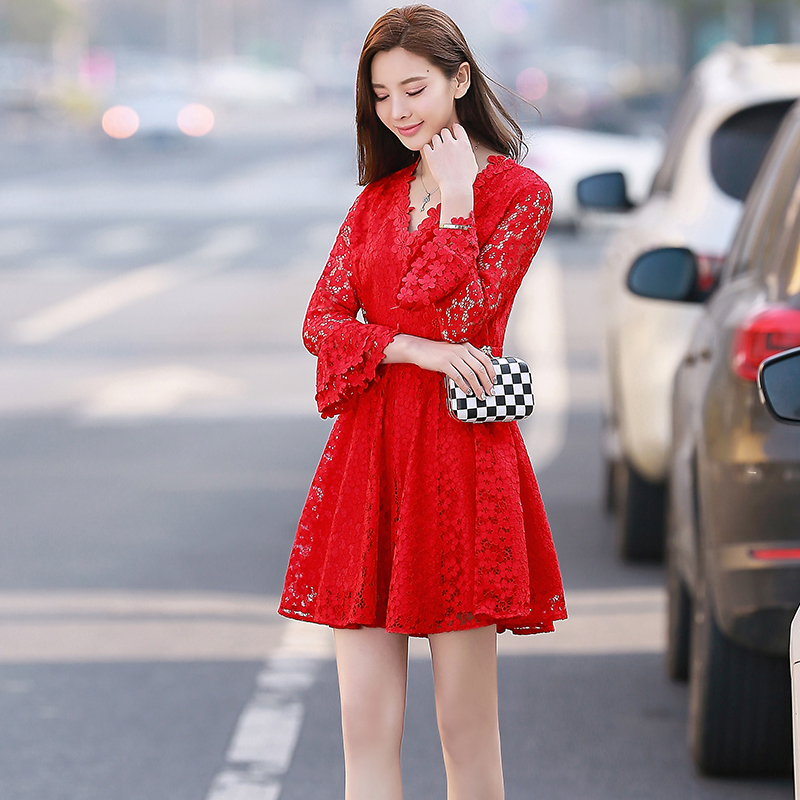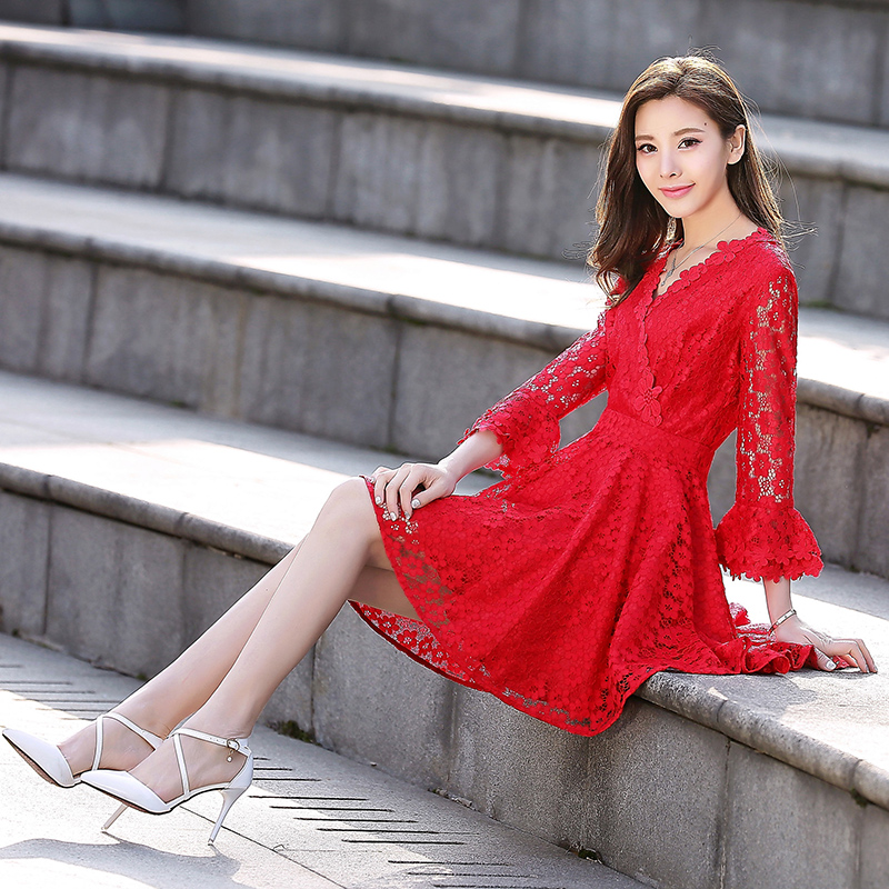 • 孕妇高腰敬酒服新娘2017春季新款蕾丝短款连衣裙伴娘订婚回门
