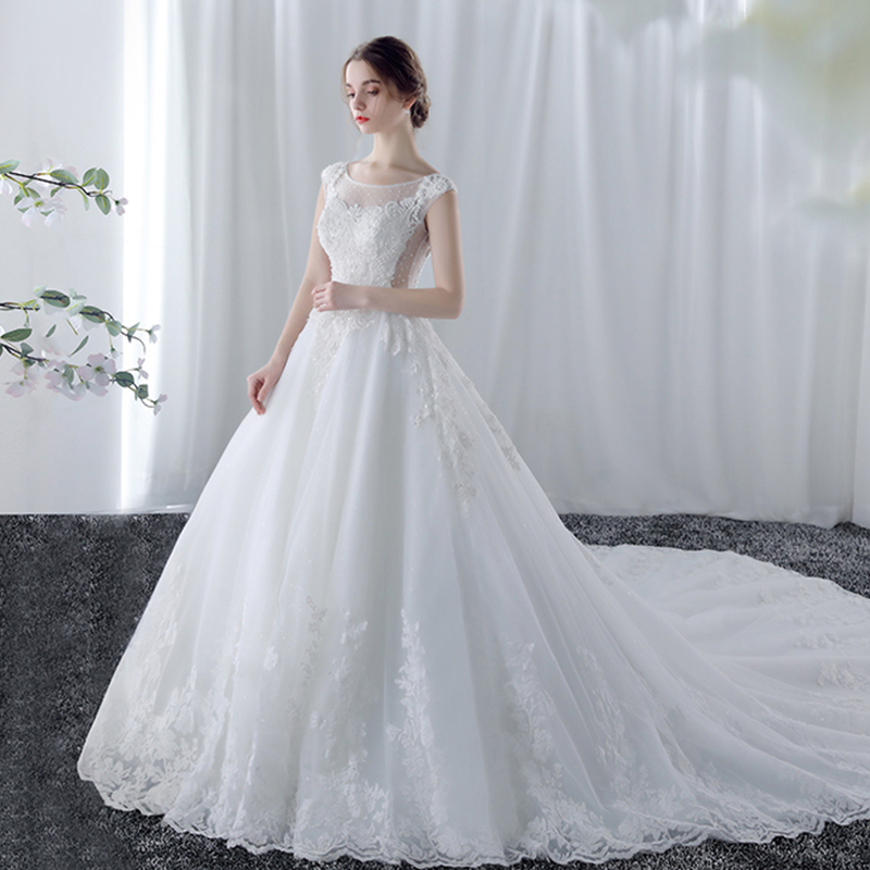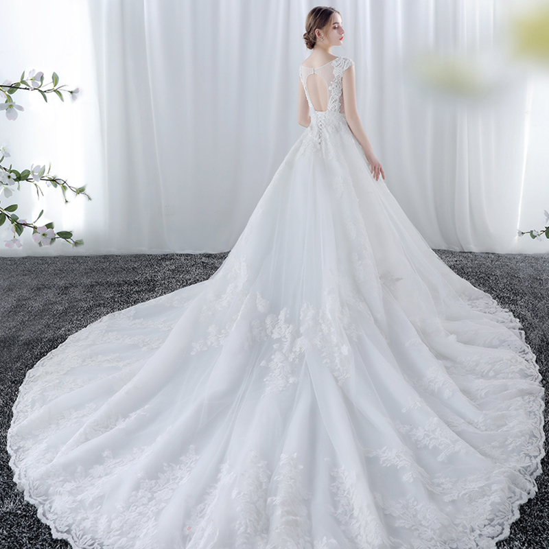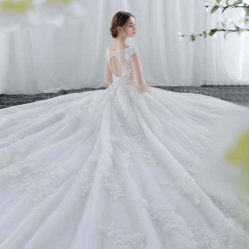 • 婚纱礼服新娘结婚韩版一字肩婚纱大拖尾公主梦幻奢华572