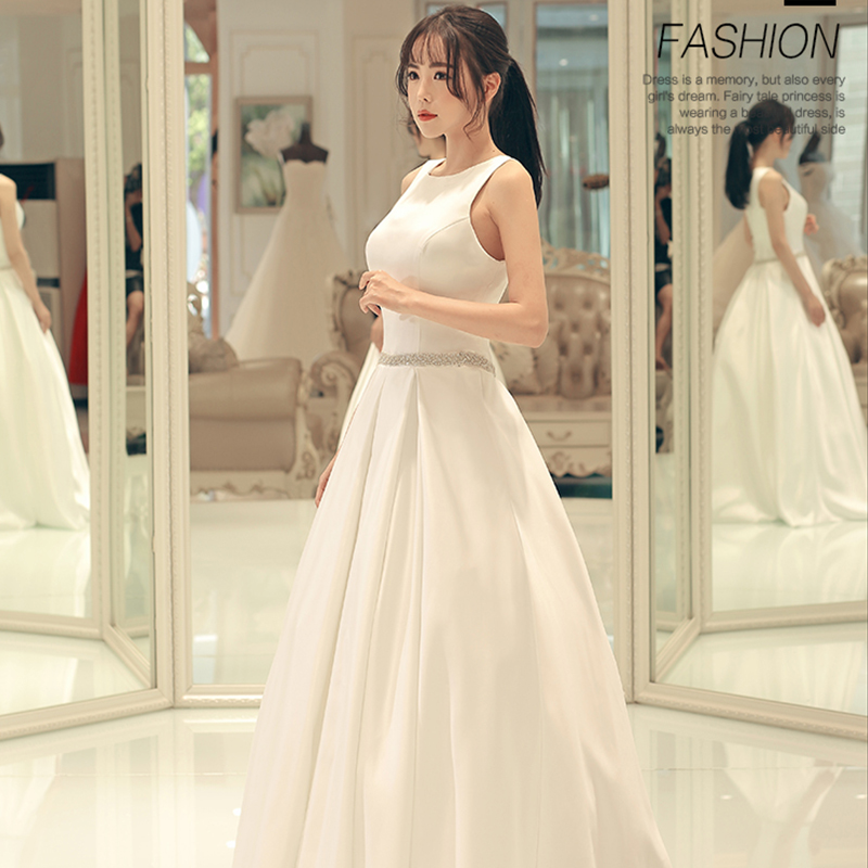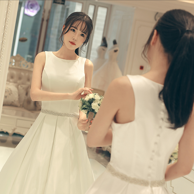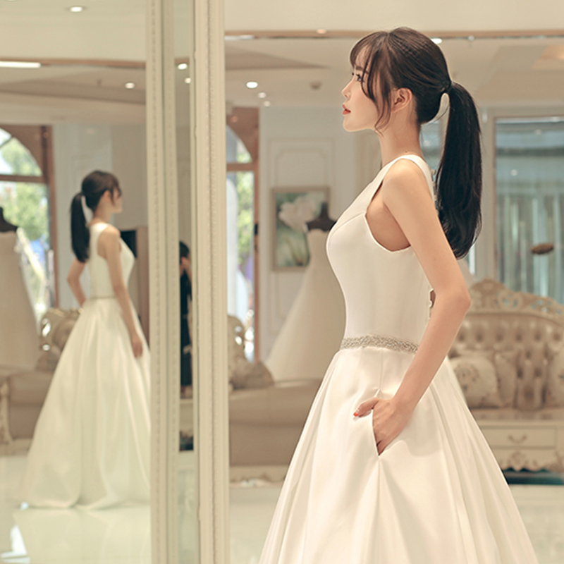 • 婚纱礼服简约一字肩缎面公主新娘结婚大码显瘦齐地夏566