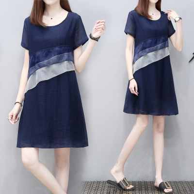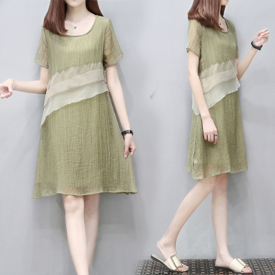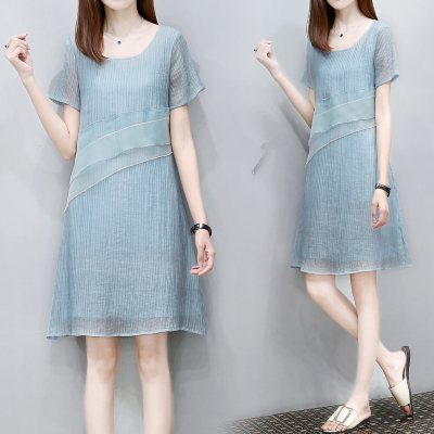 回门服夏装雪纺女装欧根纱装饰显瘦宽松a字裙大码中长款连衣裙