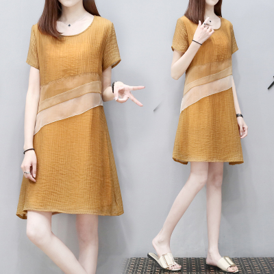 • 回门服夏装雪纺女装欧根纱装饰显瘦宽松a字裙大码中长款连衣裙