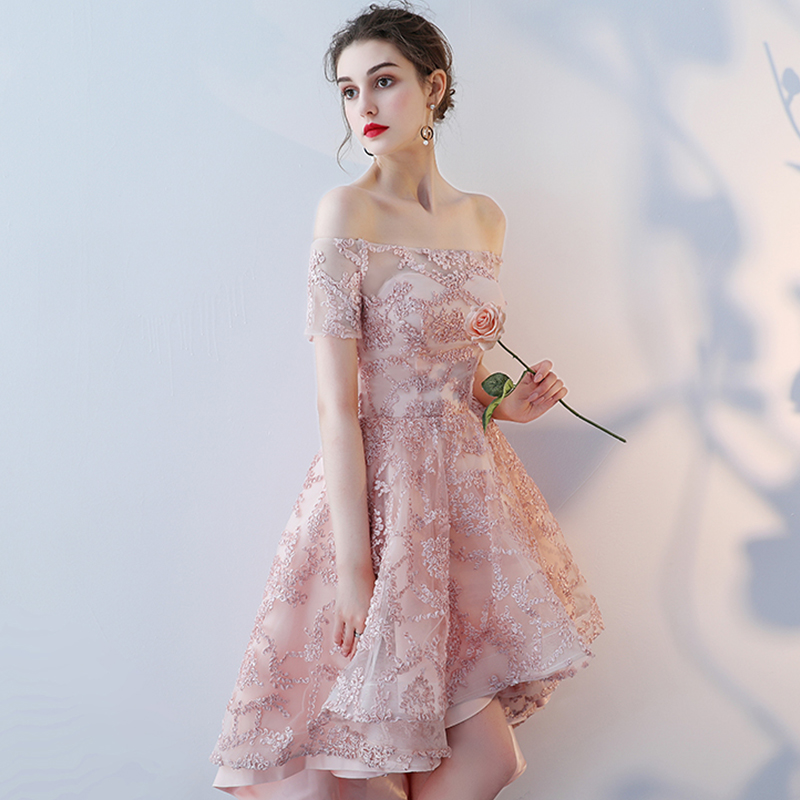 一字肩小礼服显瘦短款伴娘服宴会礼服女晚礼服新款时尚392