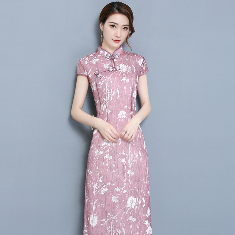 夏季新款奥黛改良旗袍 中式连衣裙 仿真丝中长款连衣裙276