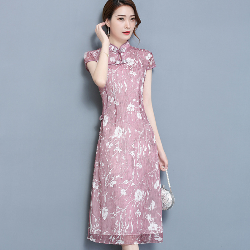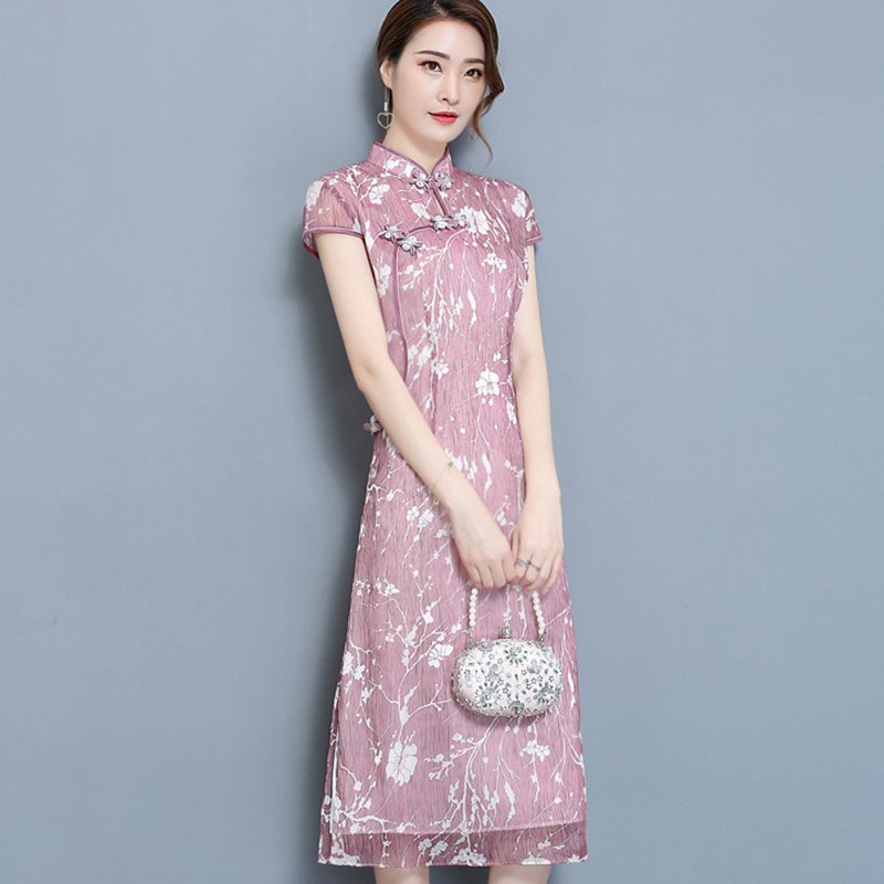• 夏季新款奥黛改良旗袍 中式连衣裙 仿真丝中长款连衣裙276
