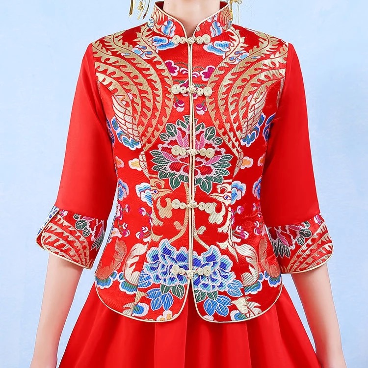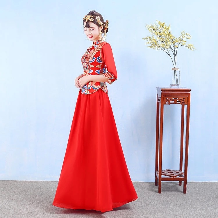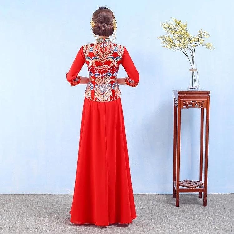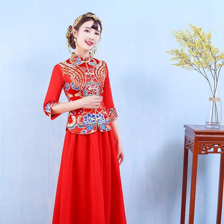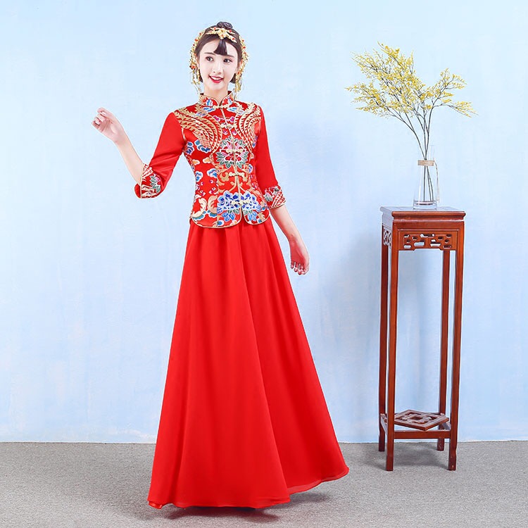• 新娘结婚2017新款中式春夏季红色长款旗袍敬酒服秀禾服嫁衣修