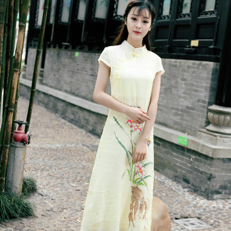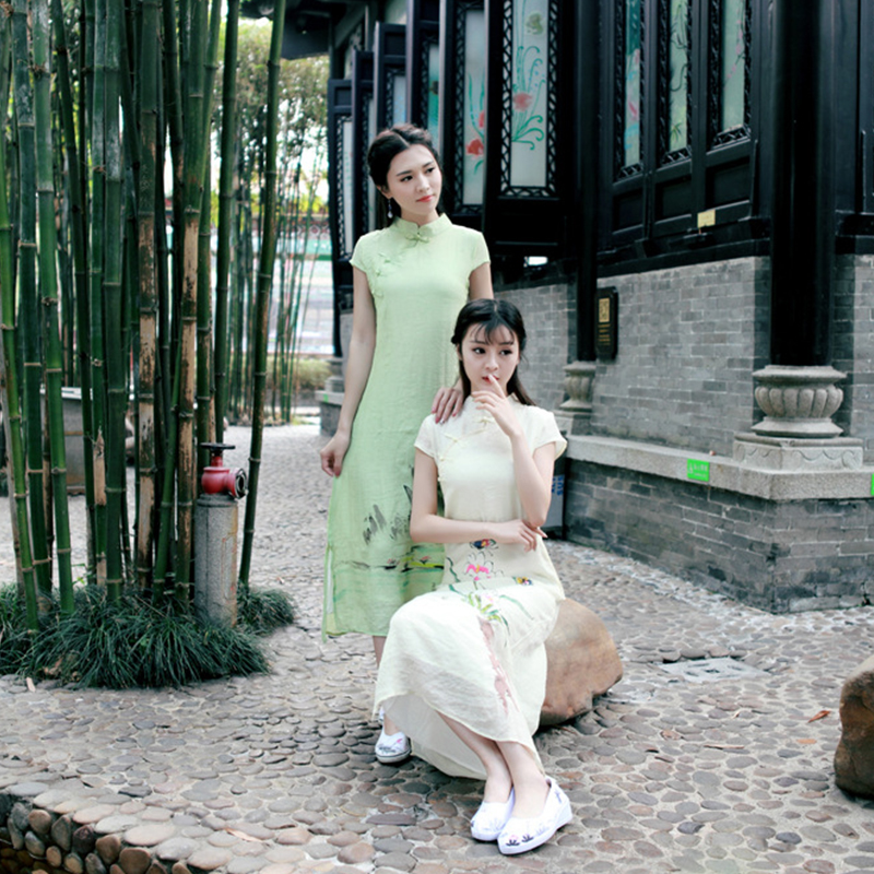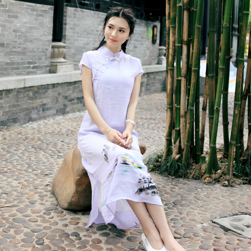 • 棉麻女装复古文艺显瘦假两件套改良旗袍棉麻短袖连衣裙279