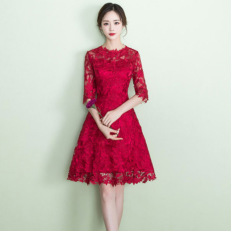 • 敬酒服新娘结婚新款酒红色短款显瘦回门婚礼晚礼服女
