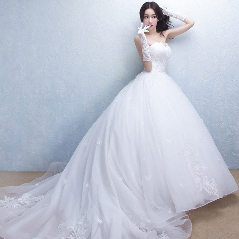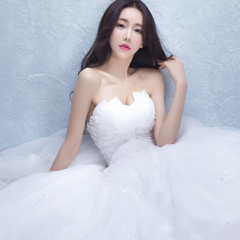 • 2017新款新娘结婚齐地韩式抹胸修身长拖尾婚纱婚纱礼服417