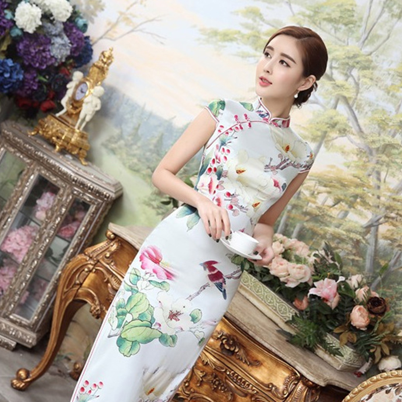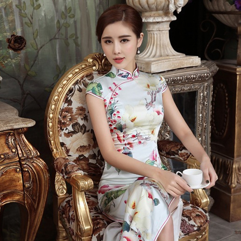• 重磅真丝长款旗袍礼服复古双层高开旗袍衩夏新款高档旗袍353