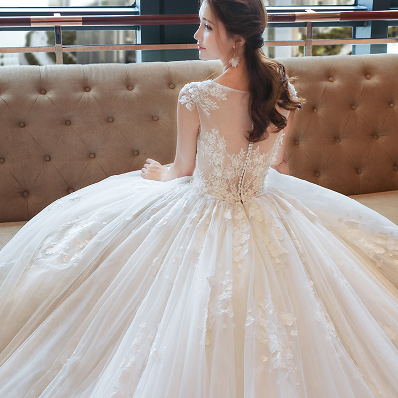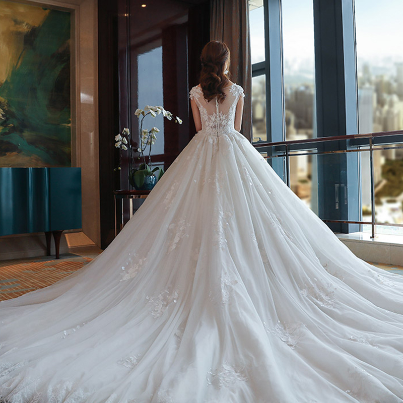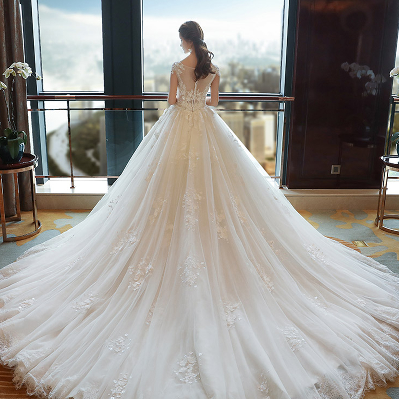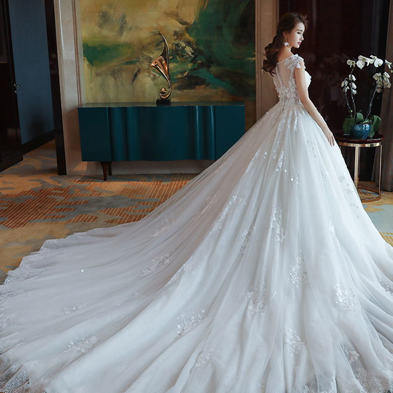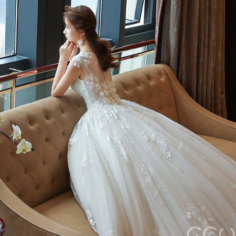 • 婚纱礼服2017新款新娘结婚韩版夏季一字肩长拖尾V领106