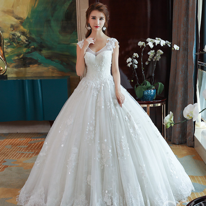 婚纱礼服2017新款新娘结婚韩版夏季一字肩长拖尾V领106