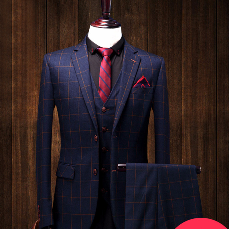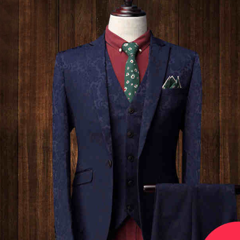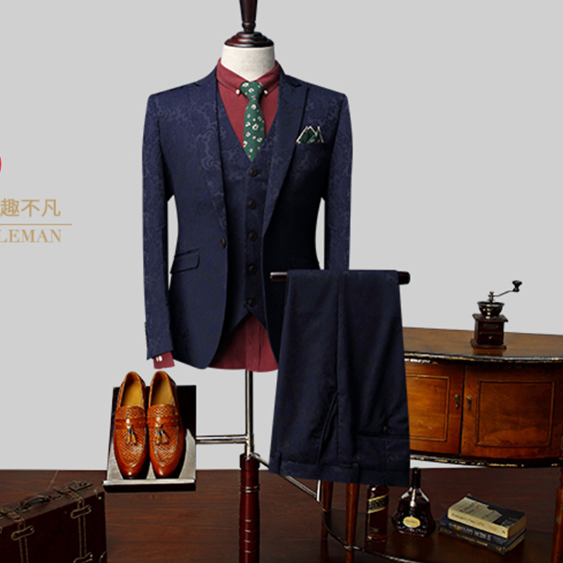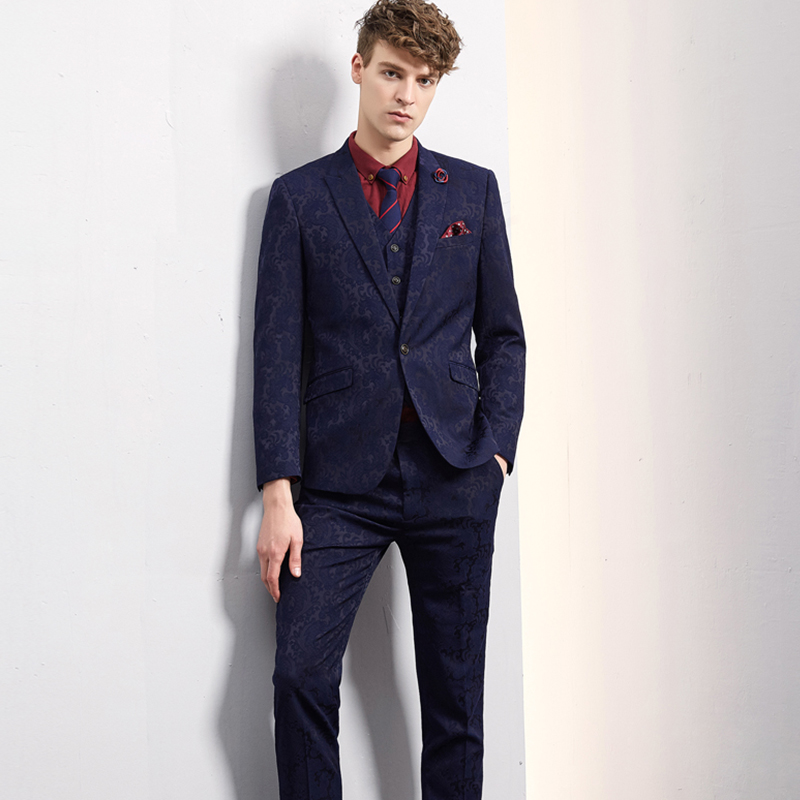 • 新郎西服套装结婚修身韩版定做刺绣西装男套装大码英伦风878
