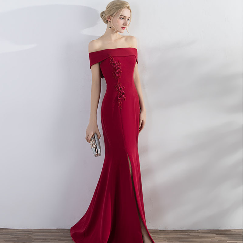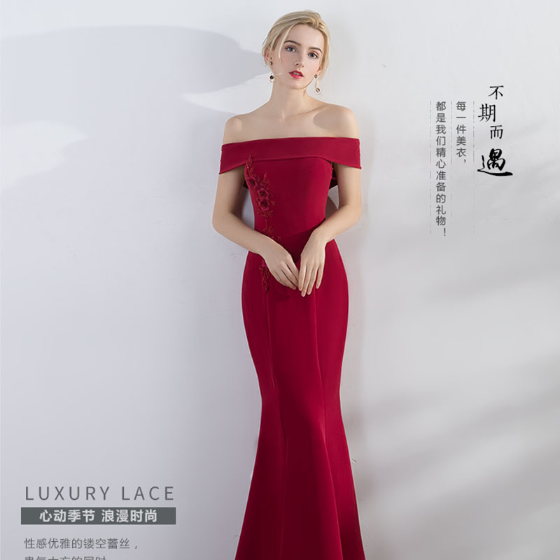• 长款新款夏季性感鱼尾显瘦结婚宴会一字肩敬酒服新娘460