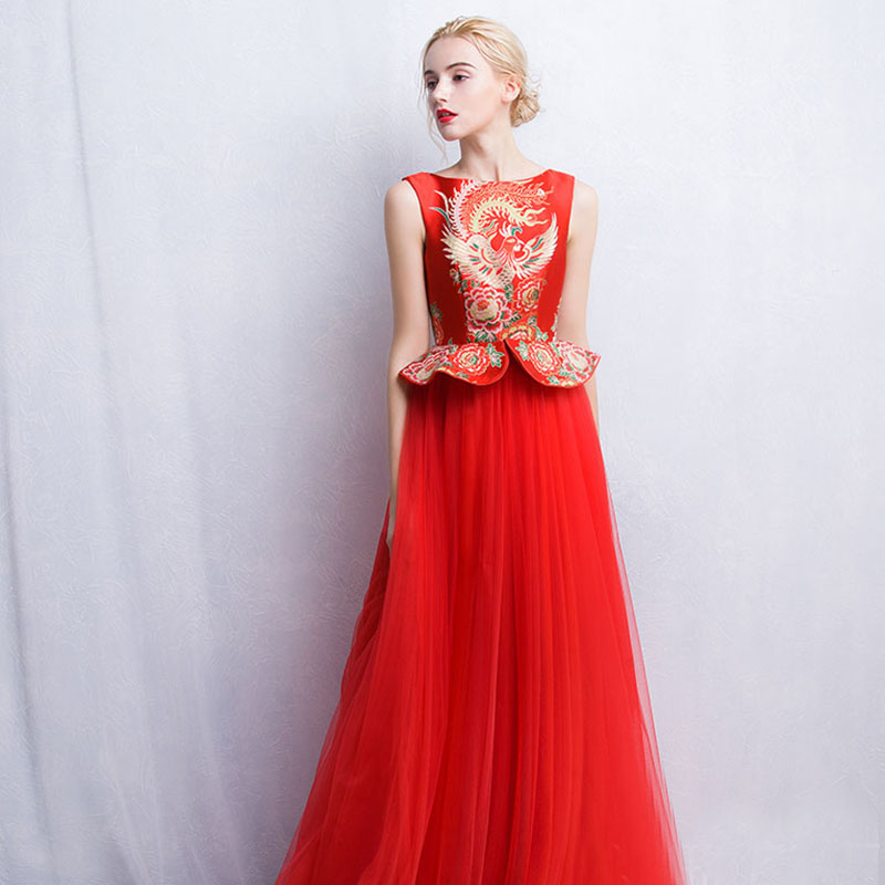 新娘复古改良旗袍新款结婚长款红色中式礼服秀禾服敬酒服444