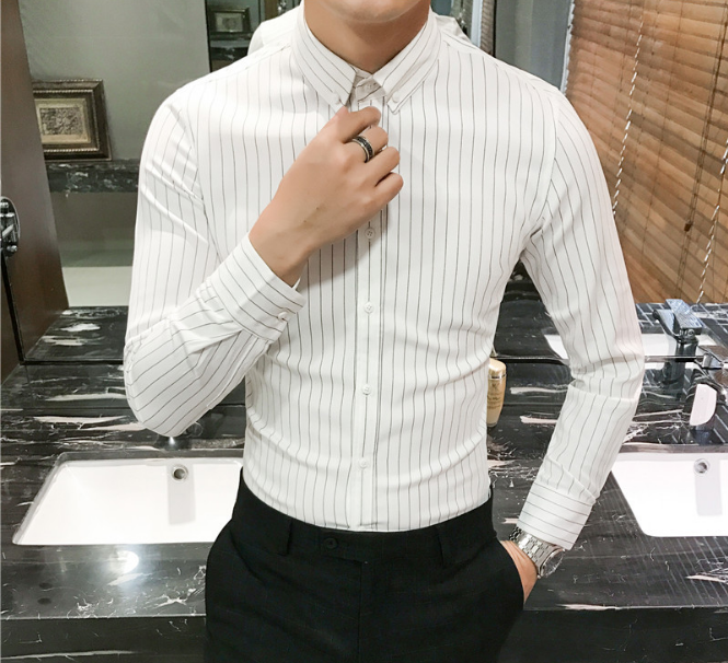 • 新款潮男长袖衬衫韩版修身时尚爆款流行条纹衬衣
