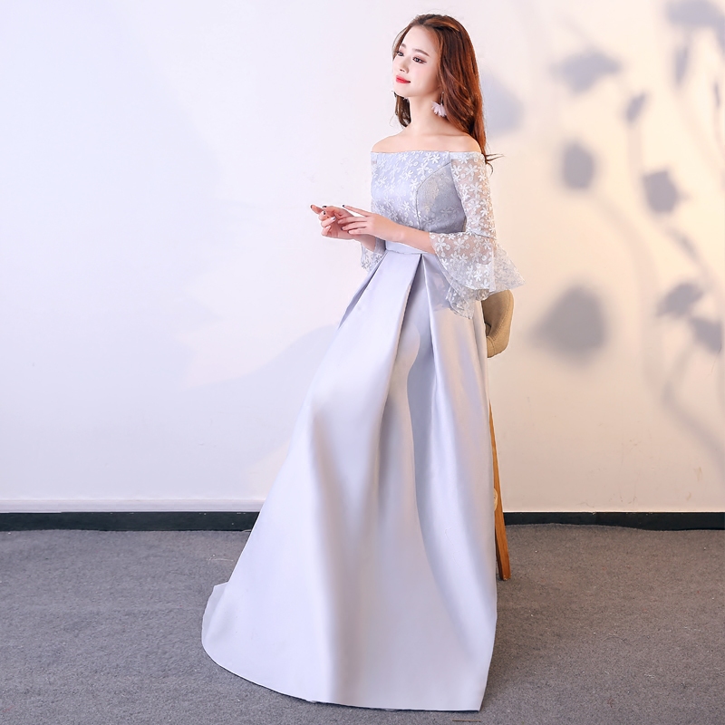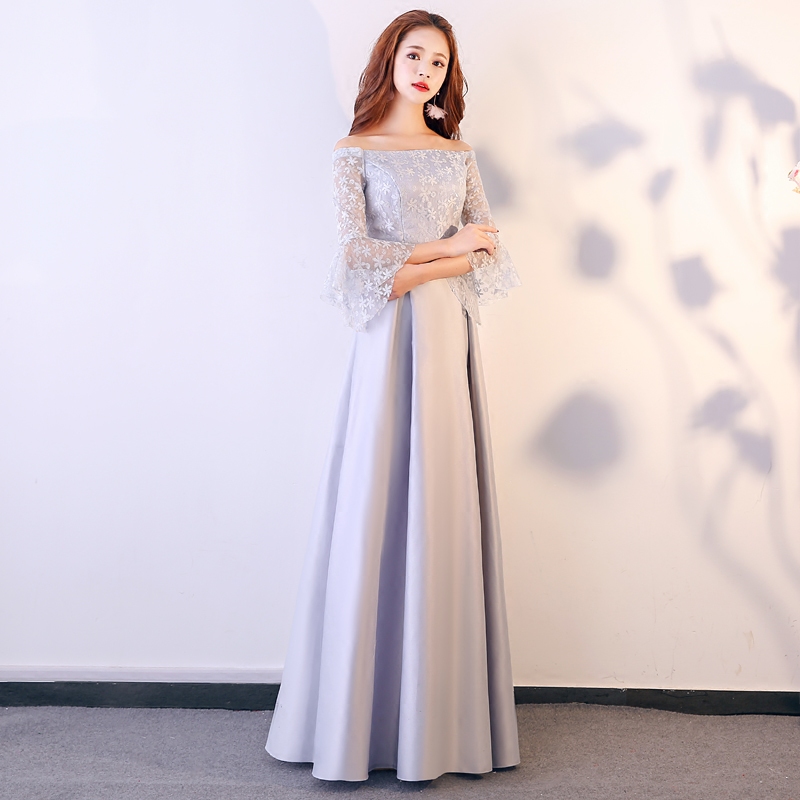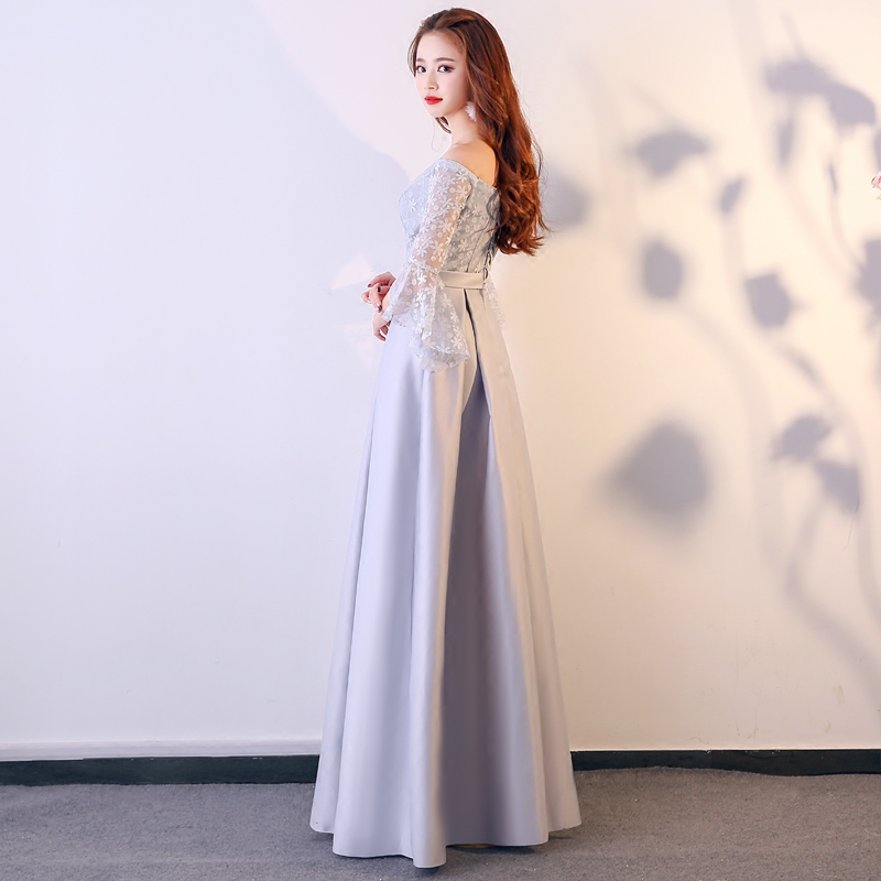 • 伴娘礼服长款冬季新款韩版灰色姐妹裙连衣裙长袖宴会晚礼