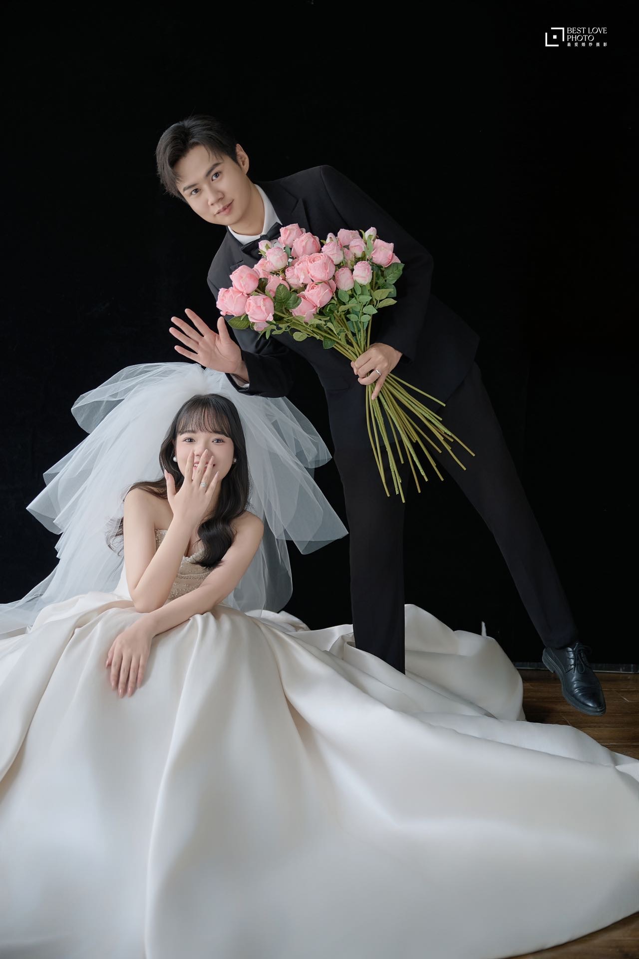 客片分享!必拍❗️氛围感黑底浪漫极简婚纱照