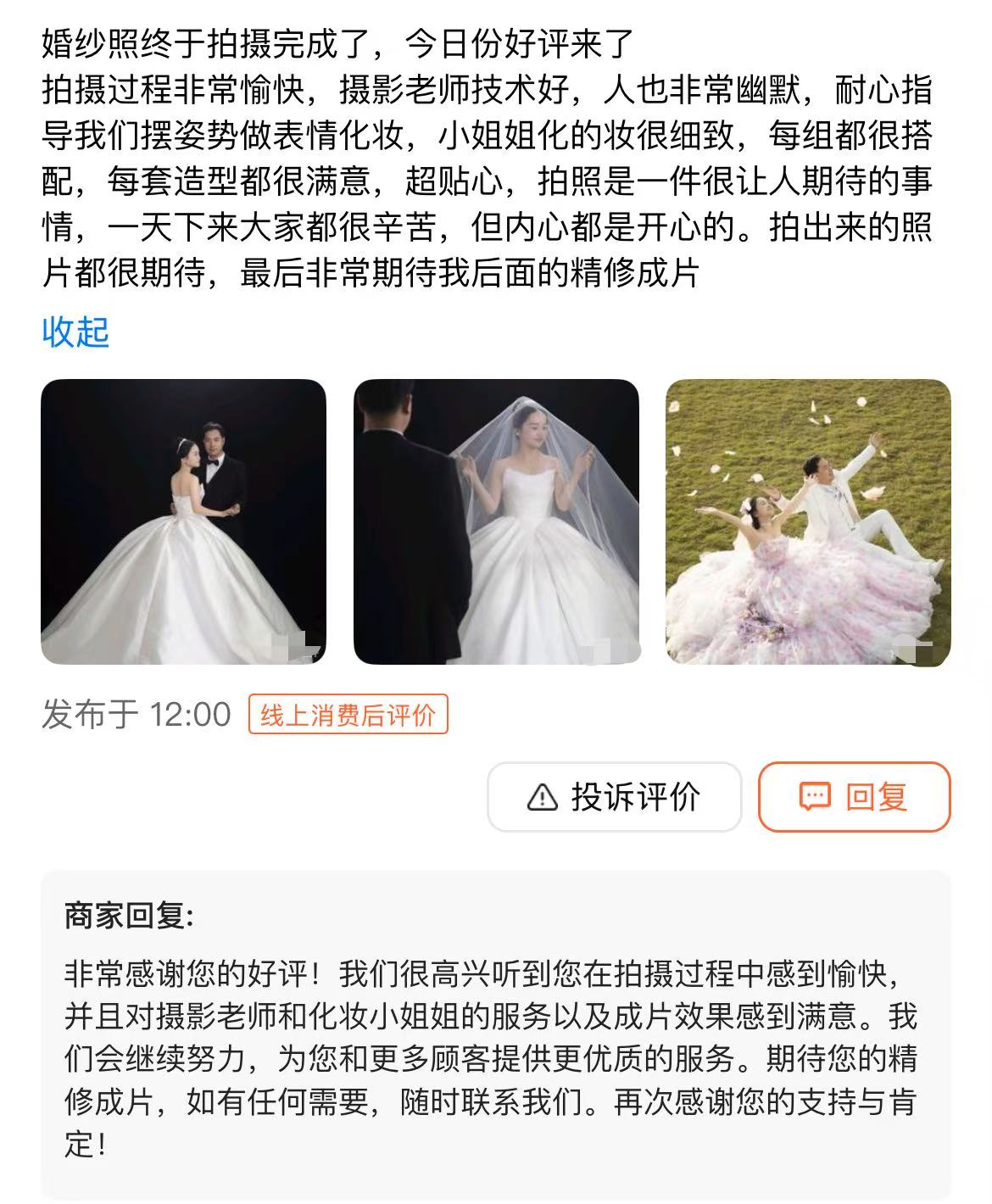 婚纱照终于拍摄完成了,今日份好评来了 拍摄过程非常愉快,摄影老师技术好,人也非常幽默,耐心指导我们摆姿势做表情化妆,小姐姐化的妆很细致,每组都很搭配,每套造型都很满意,超贴心,拍照是一件很让人期待的事情,一天下来大家都很辛苦,但内心都是开心的。拍出来的照片都很期待,最后非常期待我后面的精修