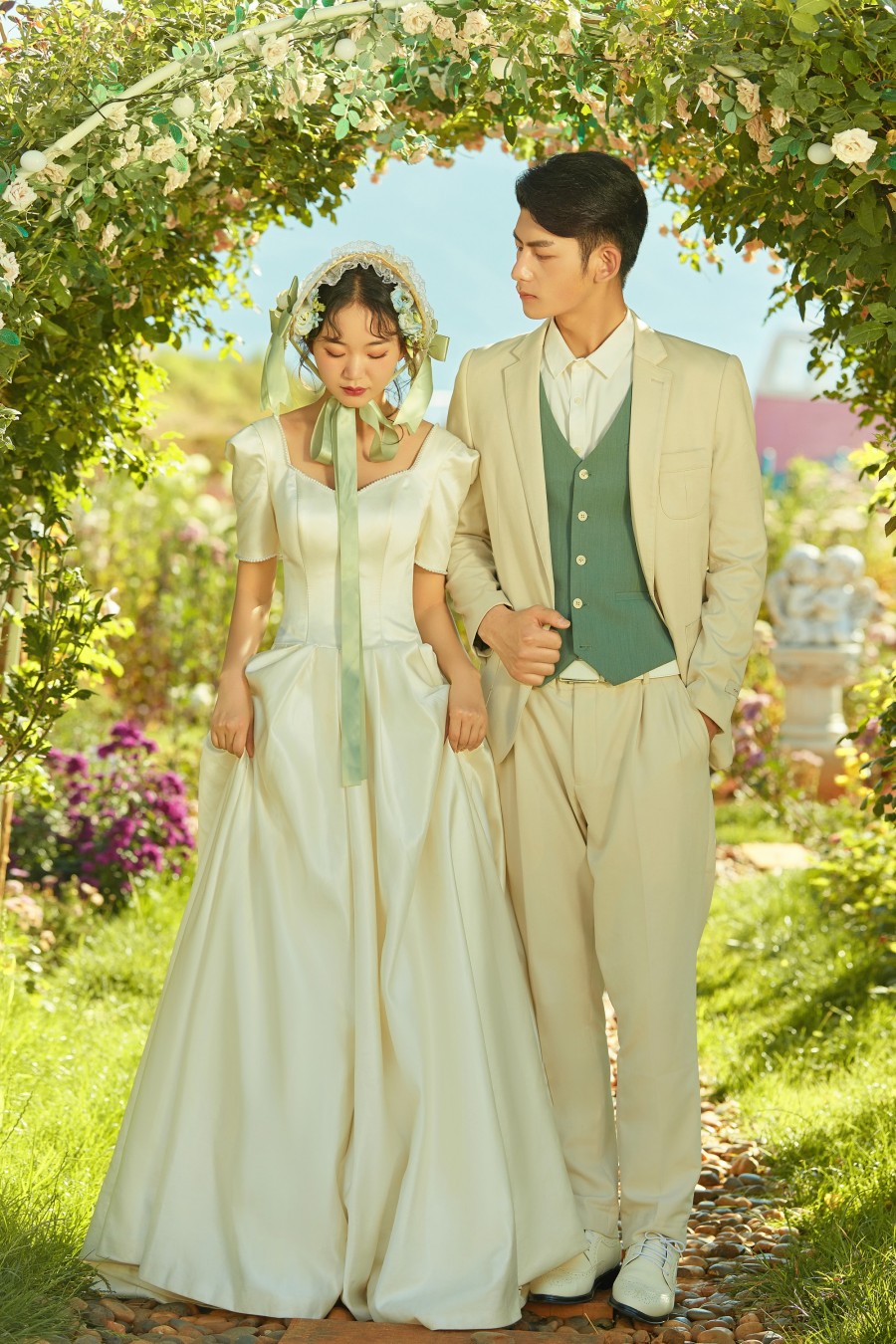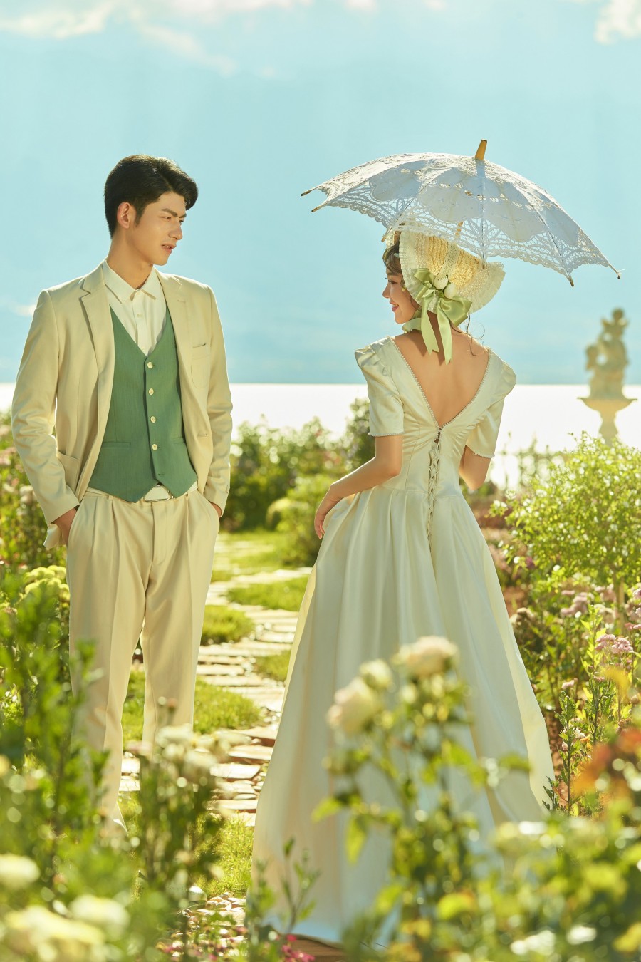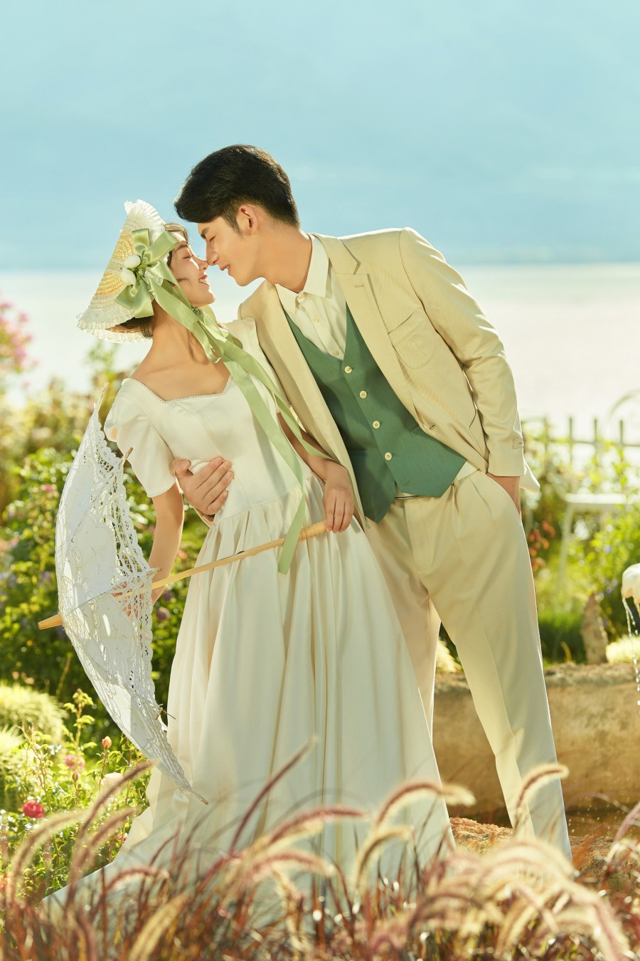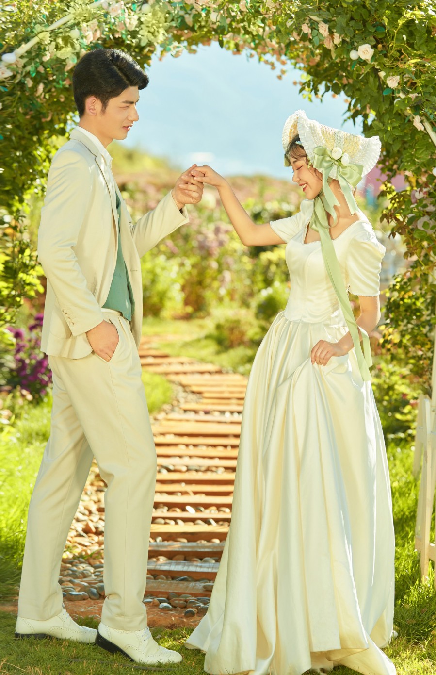 ?他们家的服务堪称一流。从礼服的选择到造型的化妆,再到拍摄的全程,均为一对一的专业服务。礼服师推荐的衣服不仅合身,更令人赞叹不已;化妆师打造的造型独具匠心,极为出彩。摄影师与摄影助理更是尽心尽力,帮助我们捕捉每一个完美的瞬间。他们不仅详细讲解每个场景的摆拍姿势,还能够引导我们展现出自然放松的笑容,让整个拍摄过程轻松愉悦。