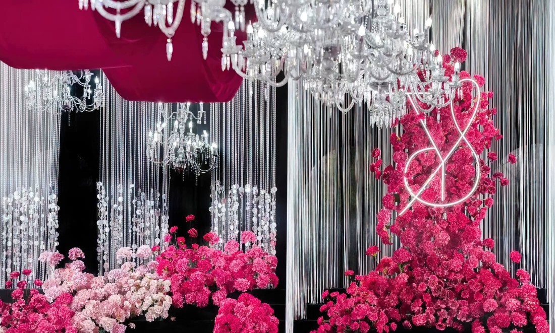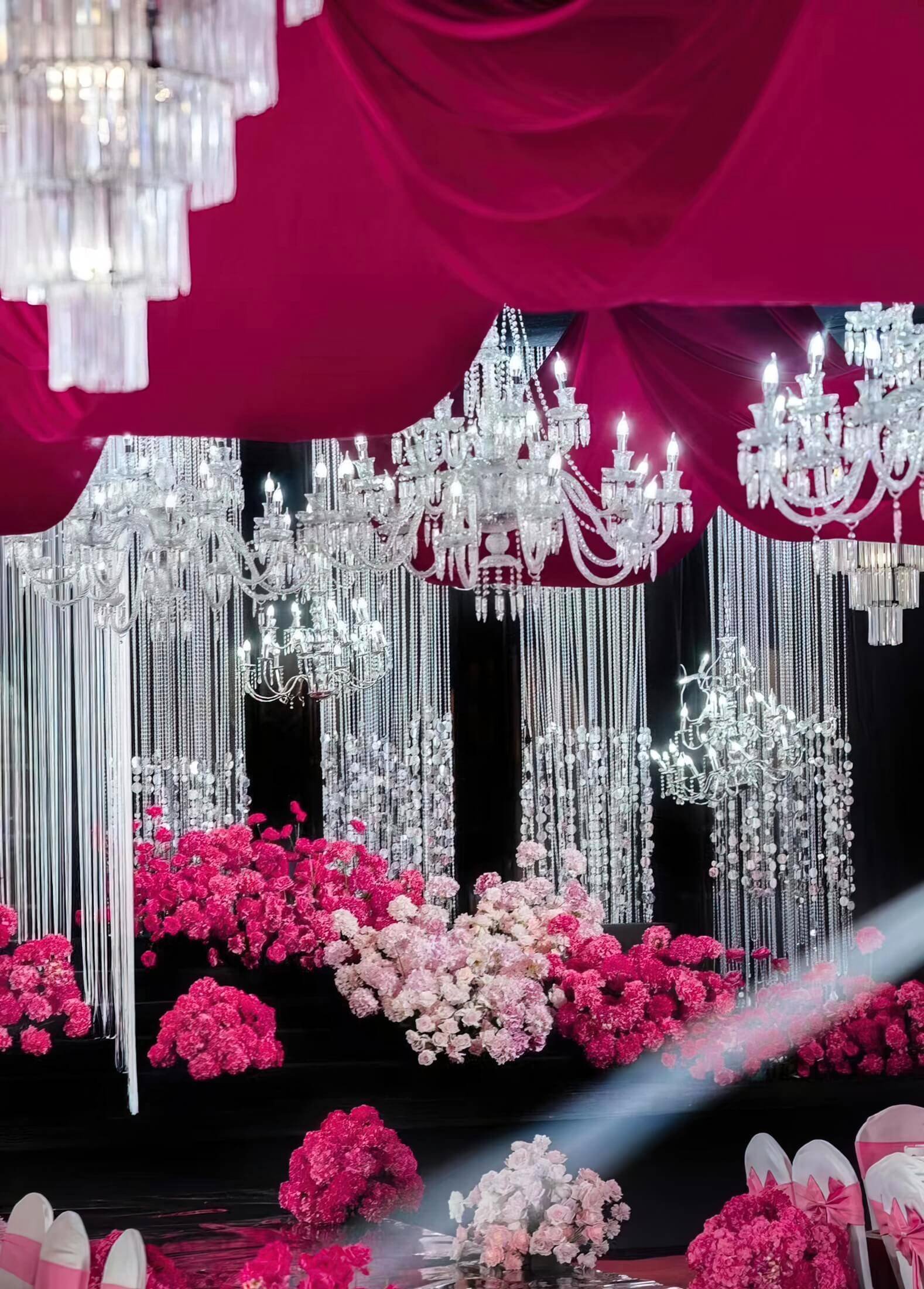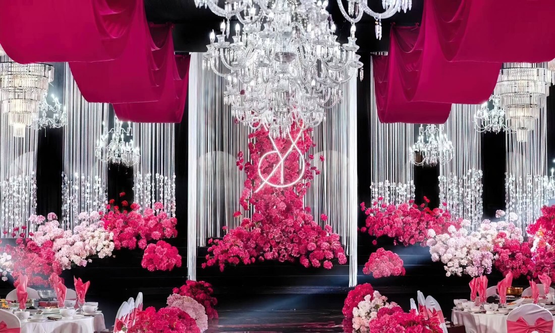 【妤TA婚礼】小众玫红色系水晶婚礼布置
