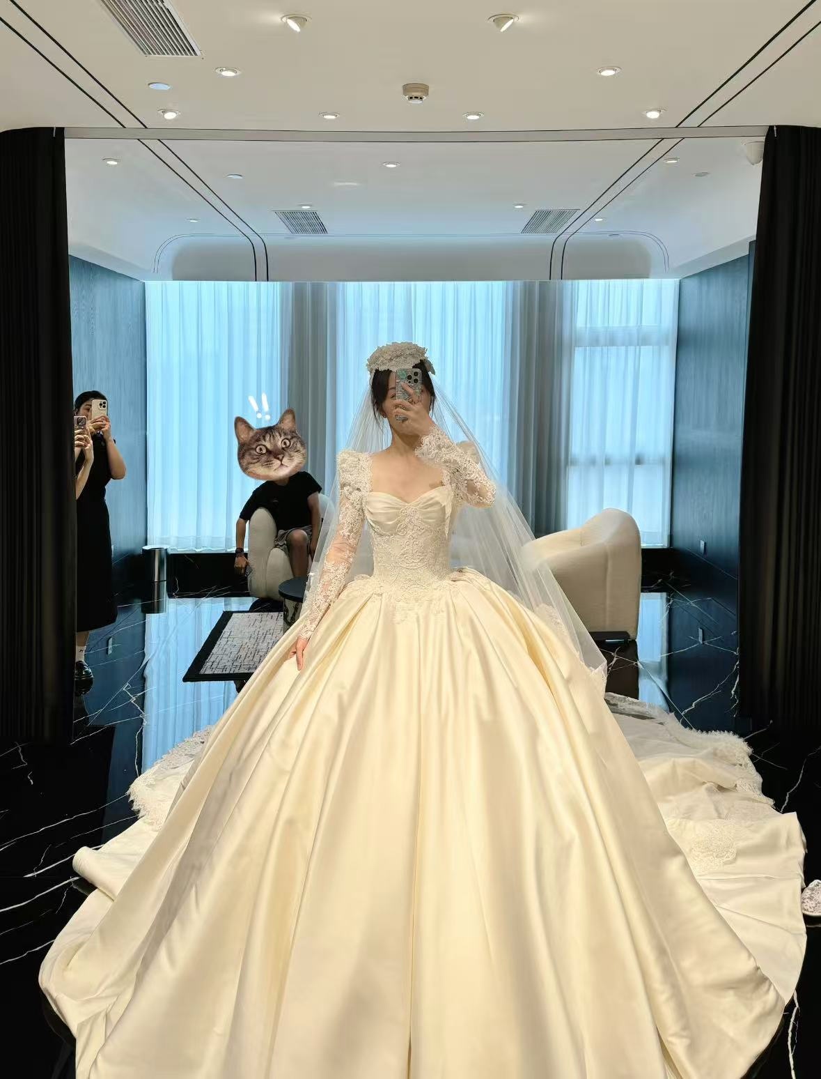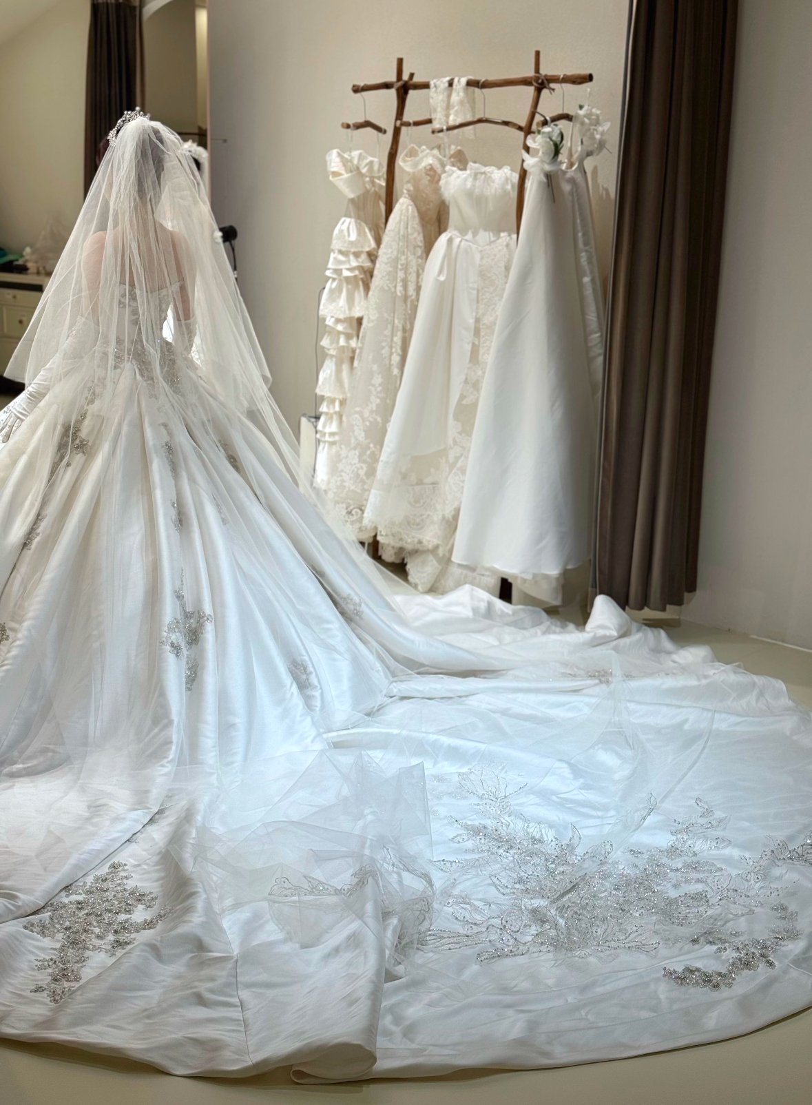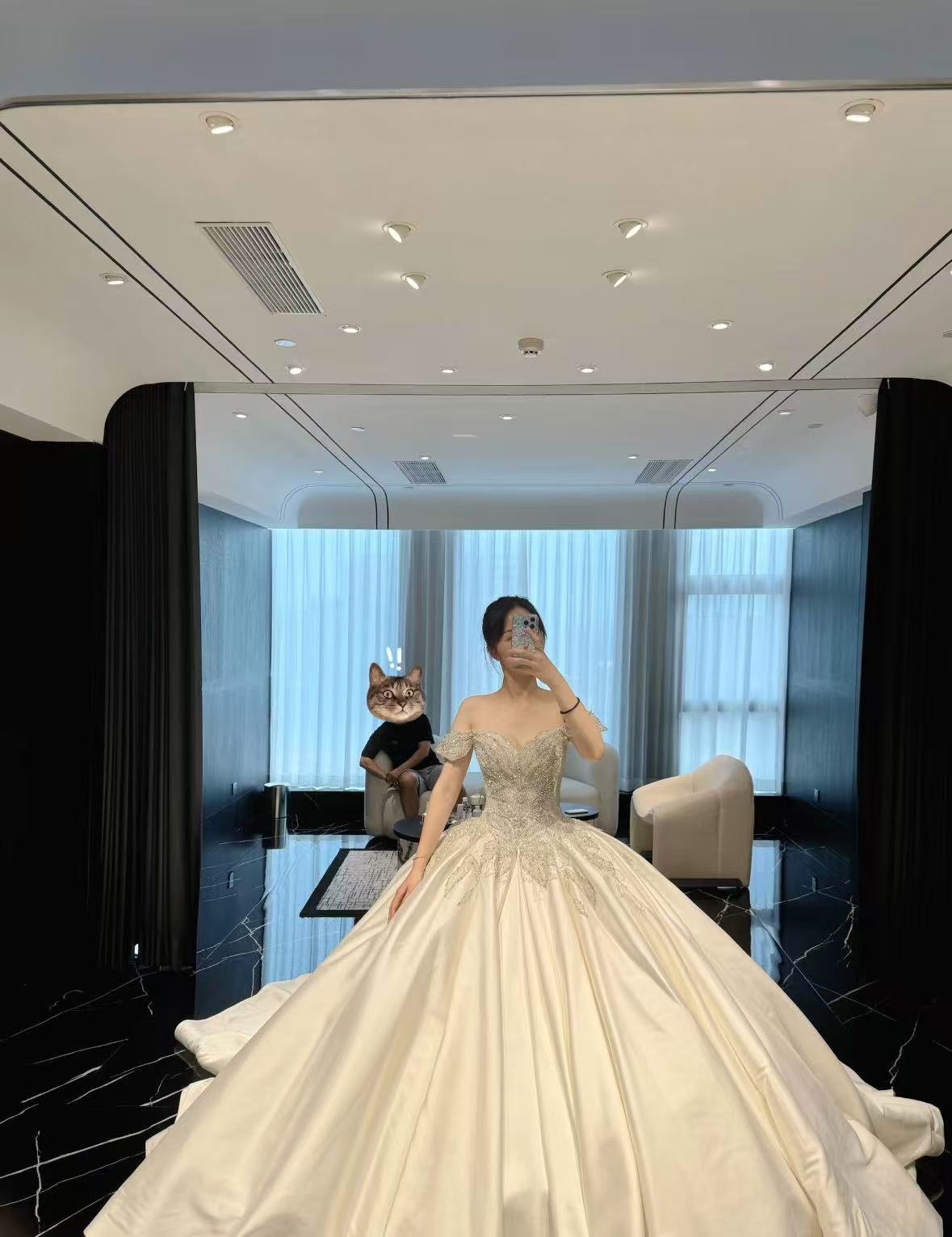 之前陪闺蜜选礼服踩过坑,这次自己来选就格外谨慎,结果这家店完全没让人失望。试穿间很宽敞,还提供拖鞋和卸妆棉,细节特别贴心。礼服质感很好,摸起来不是廉价面料,店员还会真诚提搭配建议,不会只说好听的,最后选到满意的款式,心里特别踏实!