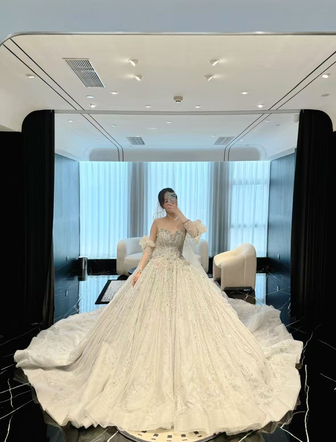 选礼服前做了好多攻略,对比后定了这家。到店后店员很有耐心,我纠结两款时,会帮我分析各自的优势,还帮我拍试穿照方便对比。确定款式后,还主动说后续可以免费微调尺寸,取礼服时会仔细检查有没有瑕疵,这种认真负责的态度,真的让人很放心!