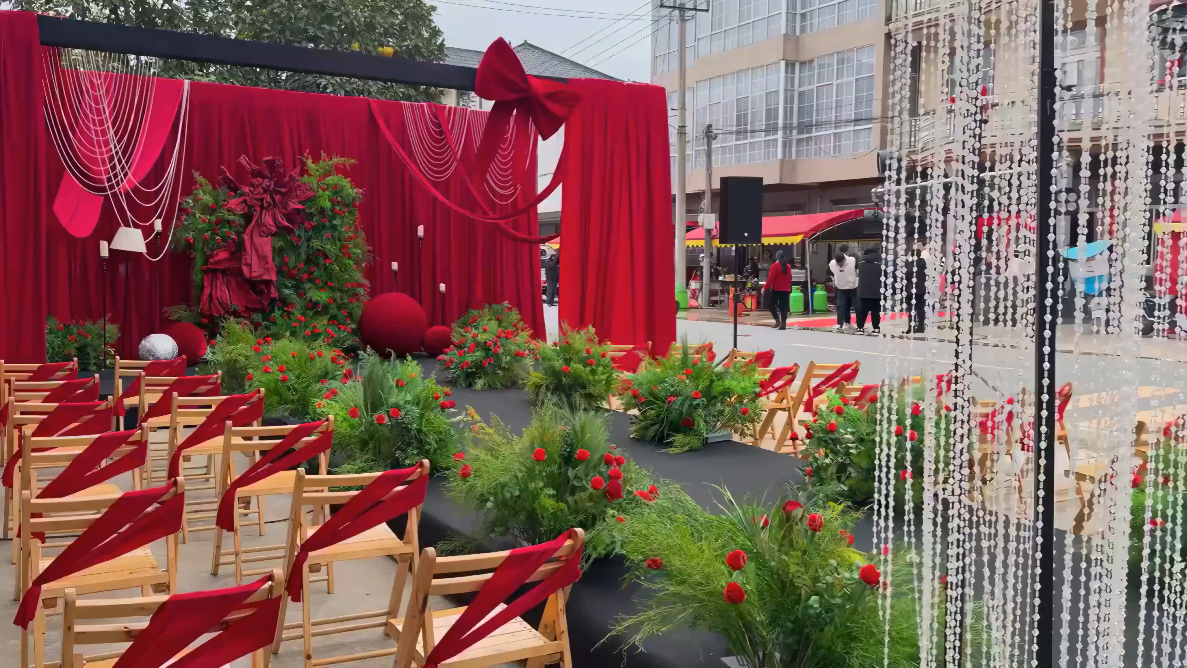 【国潮婚礼】农村黑红布幔风